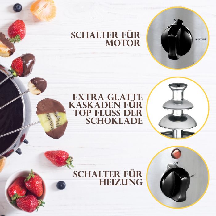- Deep drip collection bowl for long-lasting chocolate enjoyment